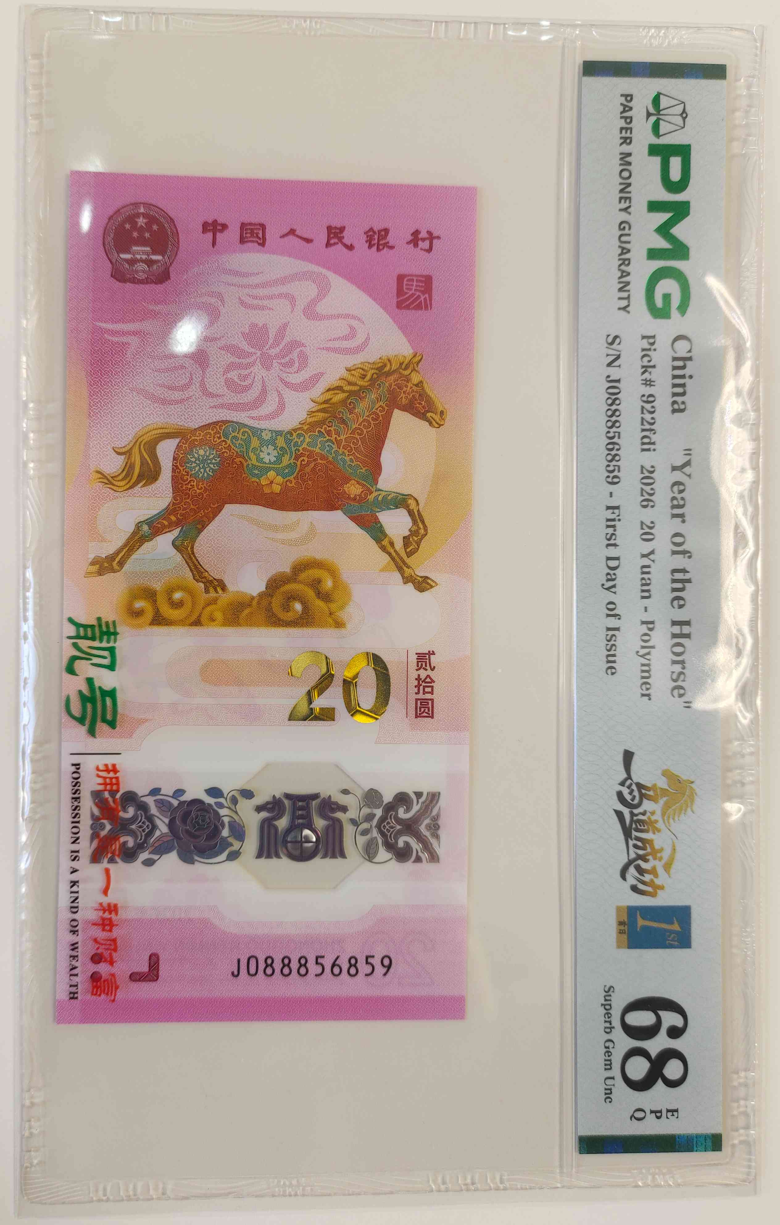 售马钞首日金蓝标0888头金马王满号