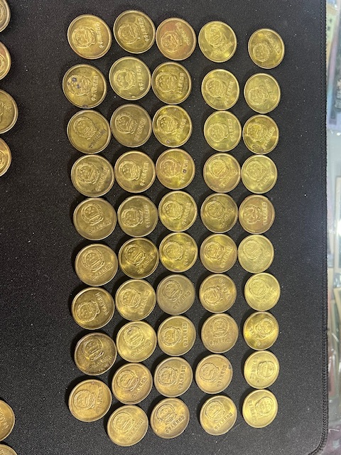 出长城币1985年五角带光49枚30元一枚。
