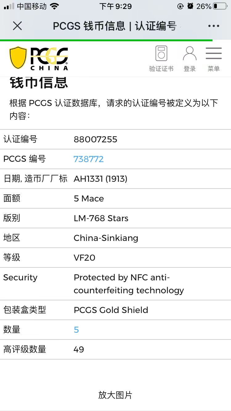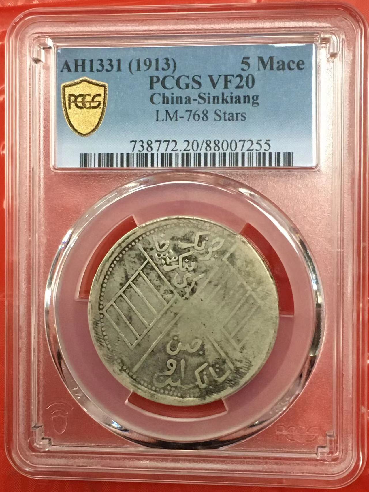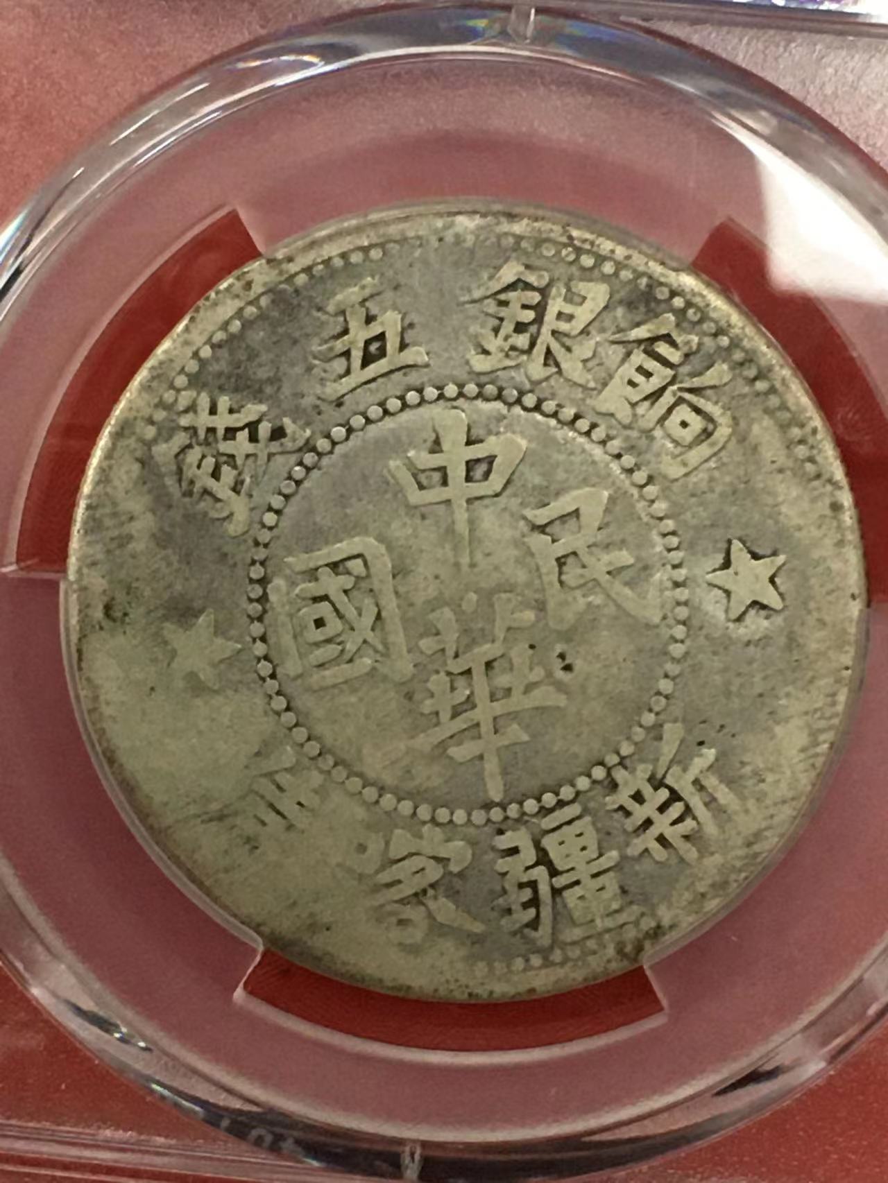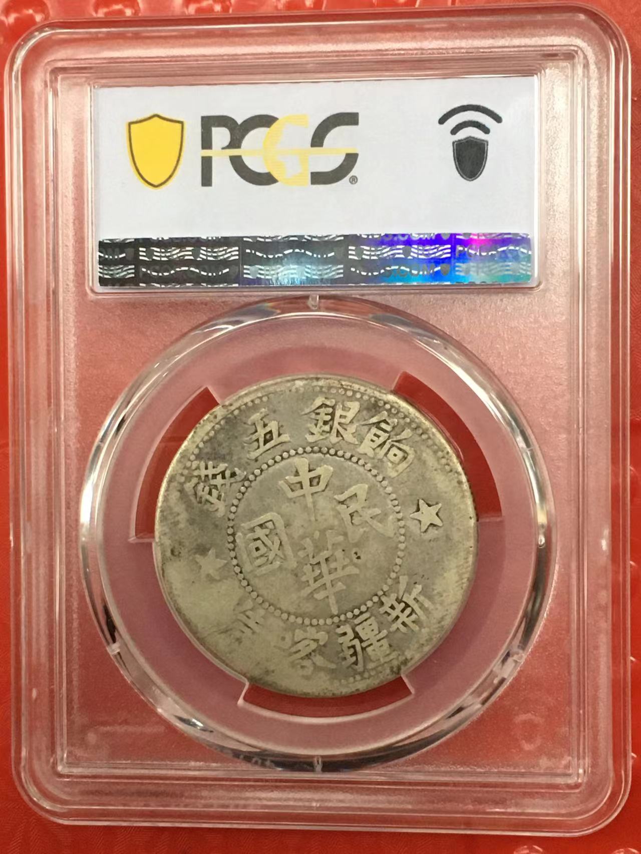 原味PCGSVF20民国新疆喀造饷银五钱