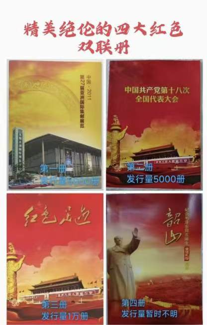 一套四册,分别是:一、27届亚展,二、十八大纪念册,三、红色足迹,四、韶山册!350元/套,一套起售,款到邮政挂号发货!