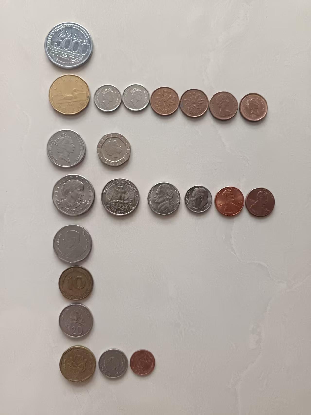 美国 1美元,25美分,5美分,10美 分,2美分,1美分*2枚
