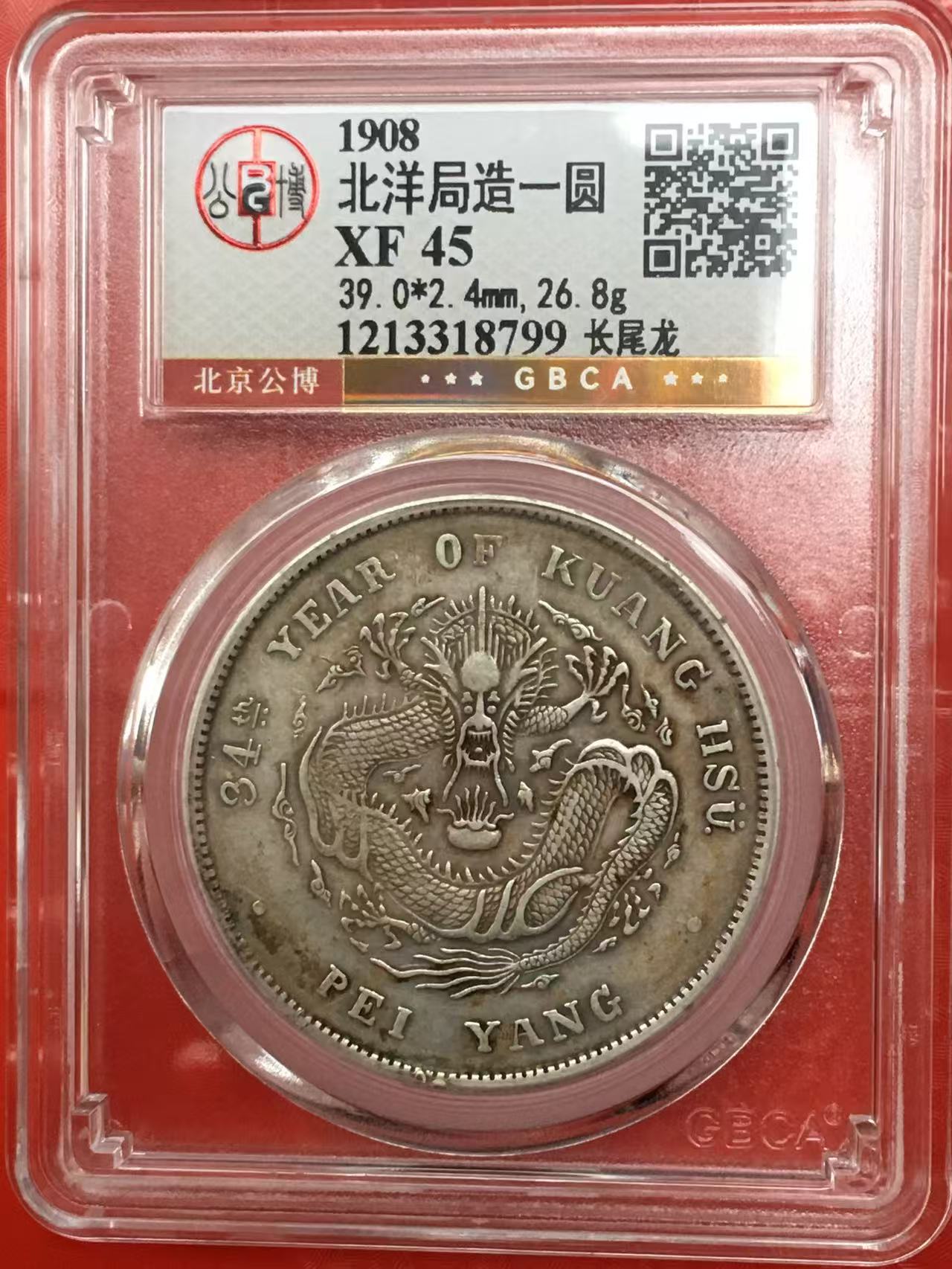爆龙鳞,高额头,北京公博XF45北洋光绪34年长尾龙