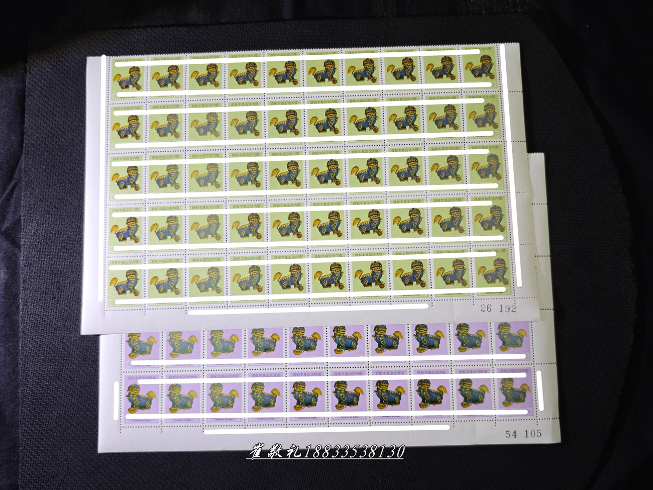 常109 无面值邮票-珐琅狮子(2全) :半版(50套)450元,