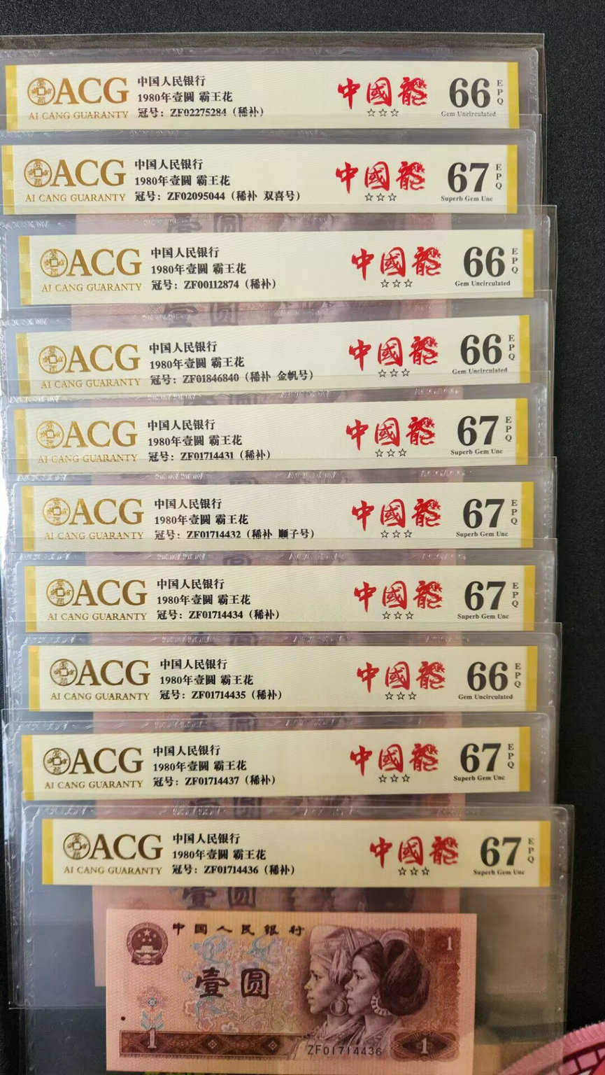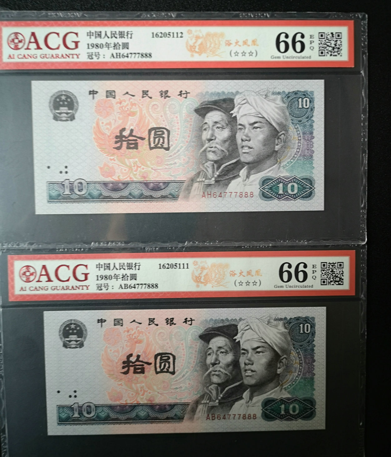 投资资讯网交易在线钱币大卖场纸币冠号(不含流通纸币) → 金网鹤王狮子中国龙补号PMG和8010全同号爱藏一对