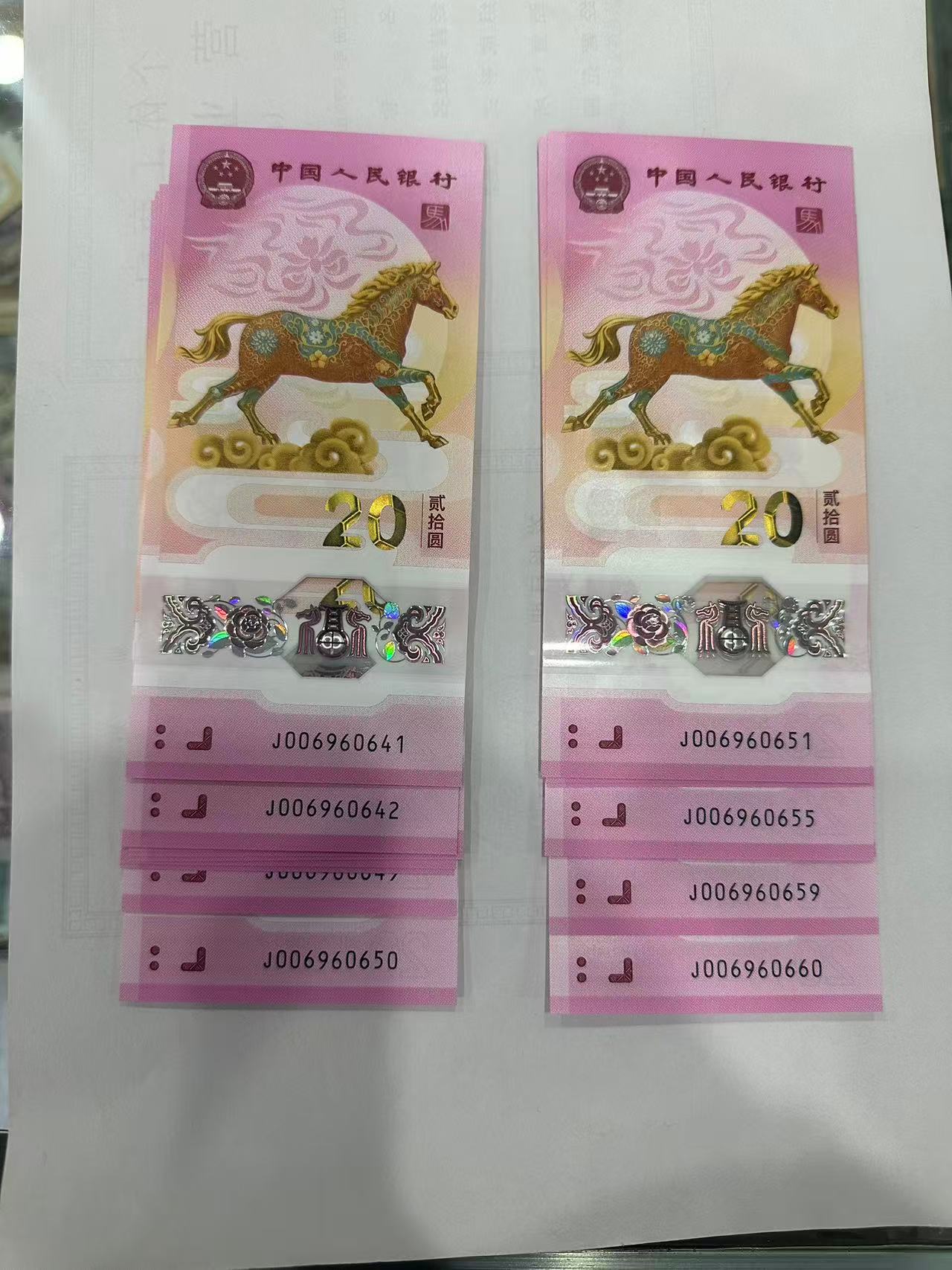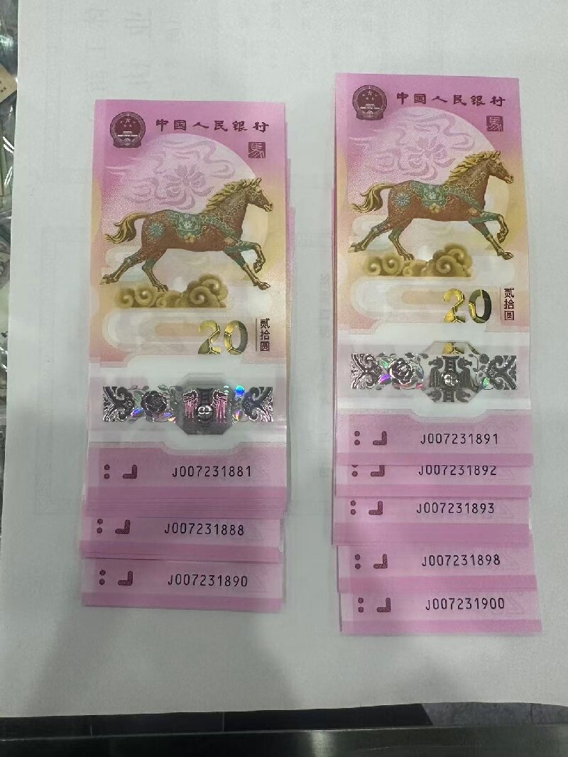 马钞金马王标二十(有一张069马三)、金钩王标二十、无4尾888标二十