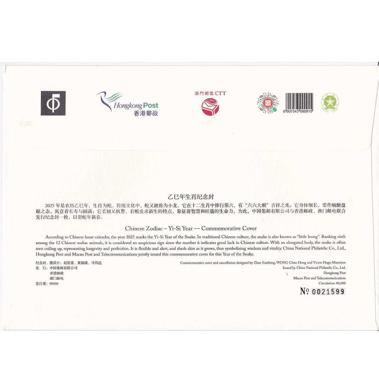 → 售25年蛇年三地纪念封