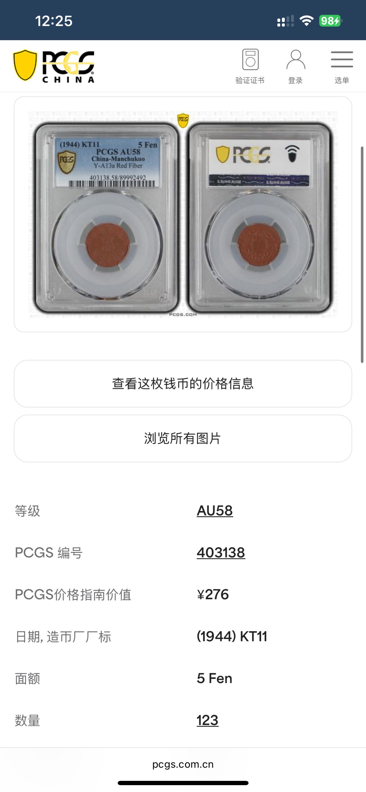 ★168元出 PC58分 康德满洲帝国 祥云5分 陶土币