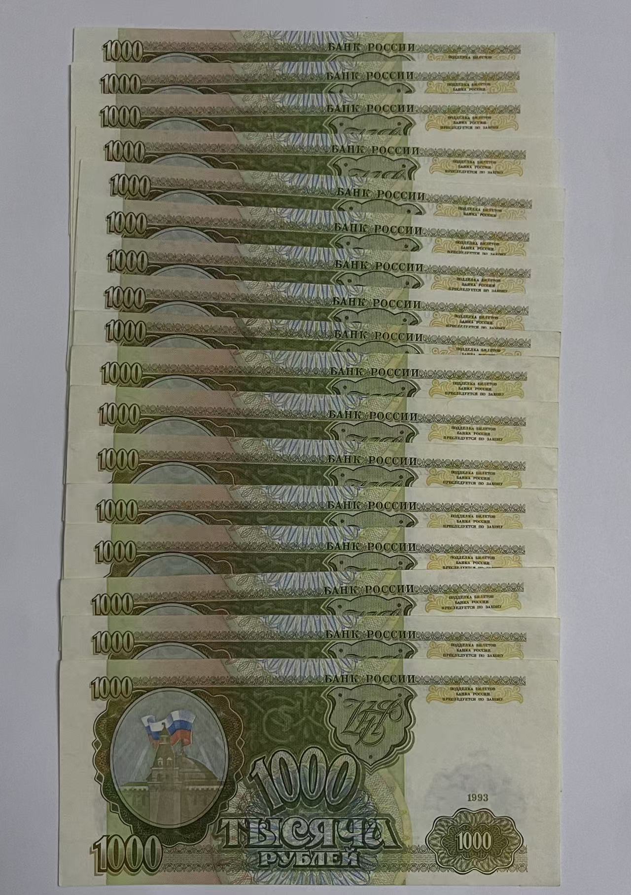 苏联1993年1000卢布16张,全新基本没流通