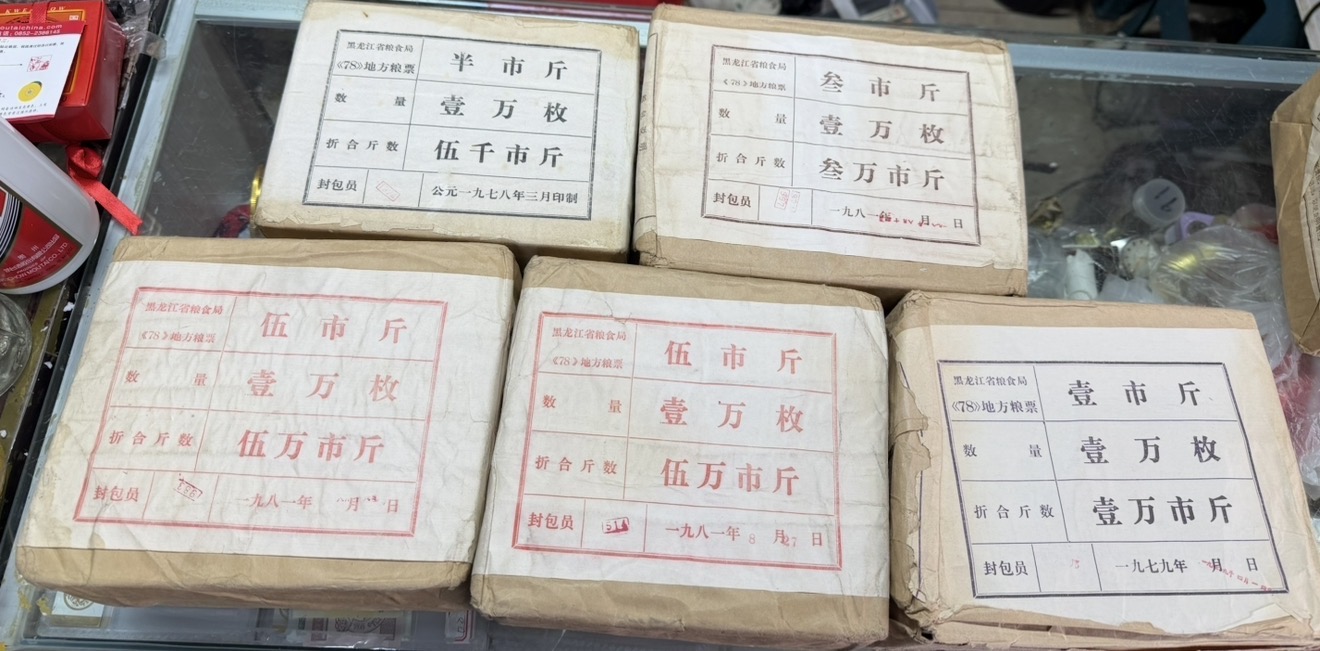 → 5100特价出黑龙江省半.1.3.5市斤粮票-5包