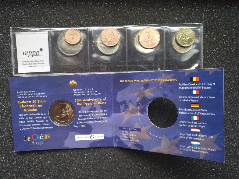 2014年拉脱维亚清年欧元套币UNC;爱尔兰2欧纪念卡币;齐售不分拆150包普快。