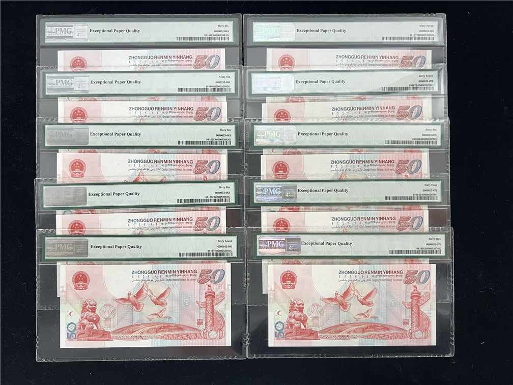 售建国钞 捆拆豹子号 带签 51590111-000 PMG64E-67E