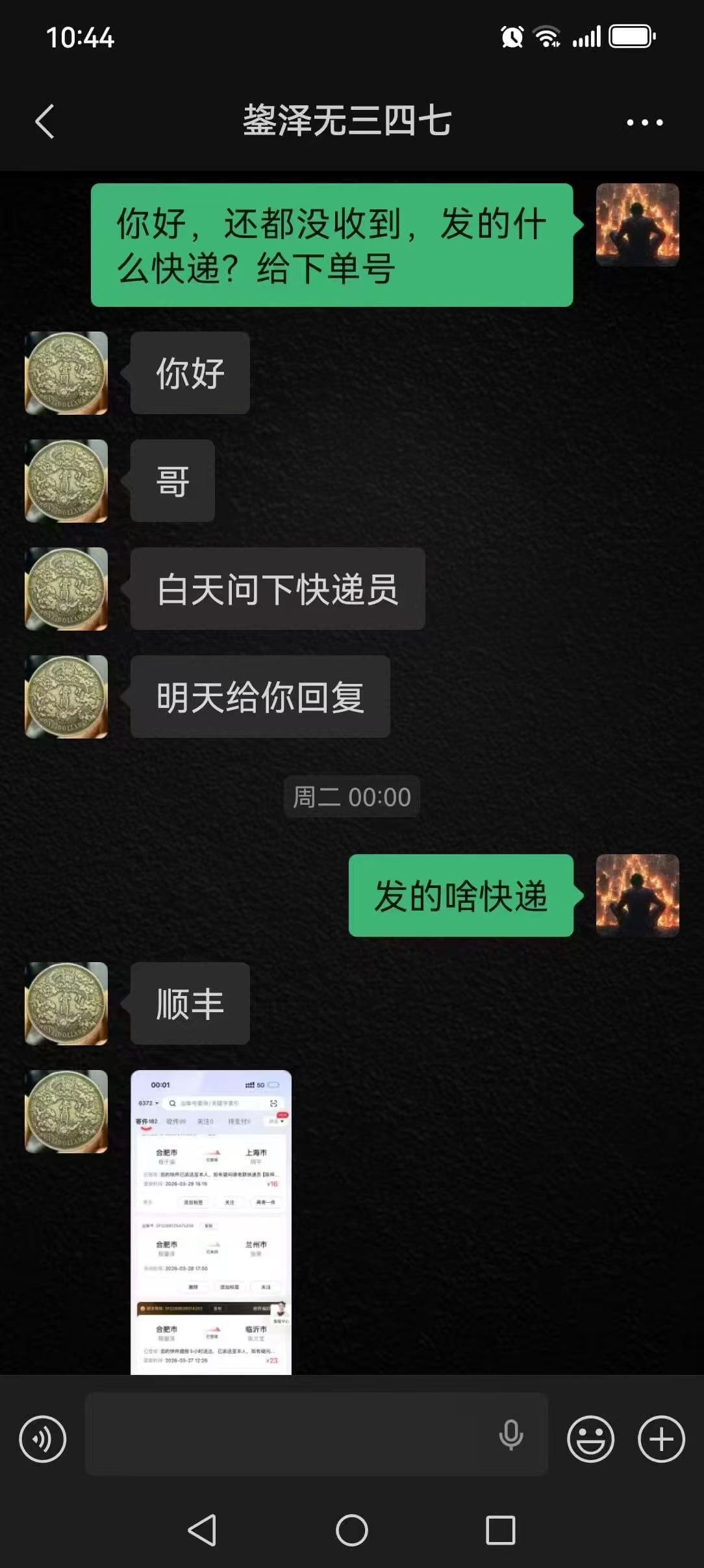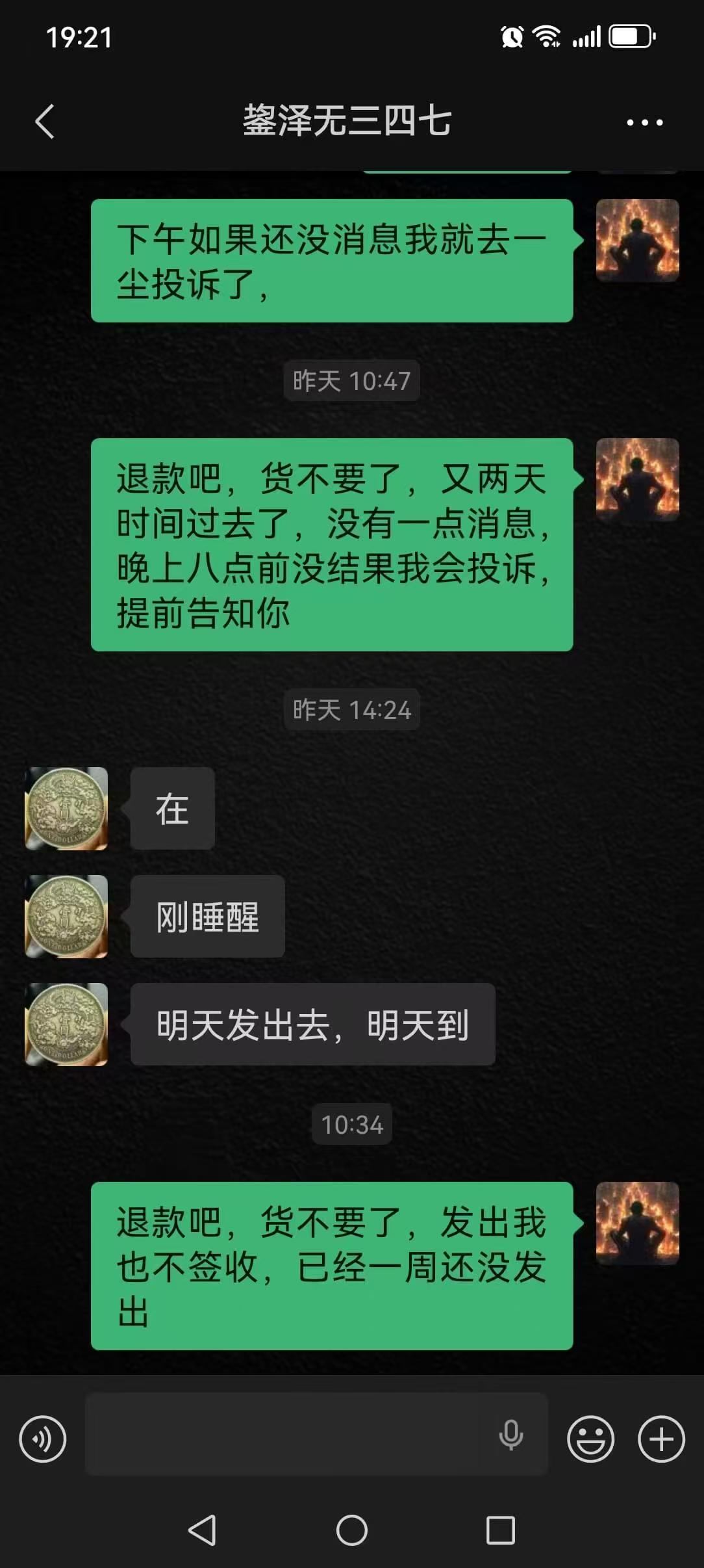 http://www.pm001.net/dispbbs.asp?BoardID=151&ID=36141288&replyID=&skin=1一尘网名 小泽 3月27日晚确认一批蛇钞,当时付款,3月30日问卖家快递单号,答复问一下回复,3月31日问啥情况,答复发顺丰,单子已关闭,说问完啥情况了回复我,然后一直都没有消息,4月3号上午问他情况,一直不回消息,我就让退款,下午答复今天发货,今天上午还是没消息,上午十点半微信要求退款,截至目前没回消息。现正式要求版主介入提醒卖家退款,一周了货还都没发出来,卖家没有一点责任心!!希望版主能尽快处理一下。