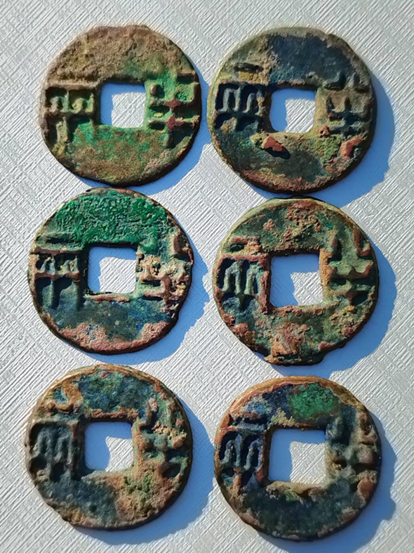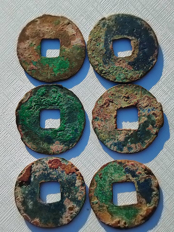 极美爆字秦半两6枚 ,字风狂野,精挑细选,个顶个品相,收藏一步到位,无漏裂,如图,喜欢的朋友不要错过。