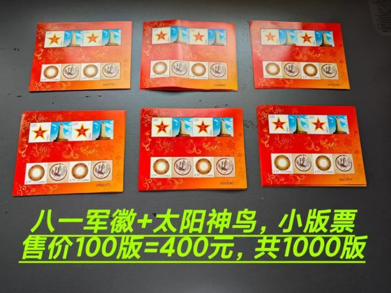 售八一军徽+太阳神鸟邮票1000版