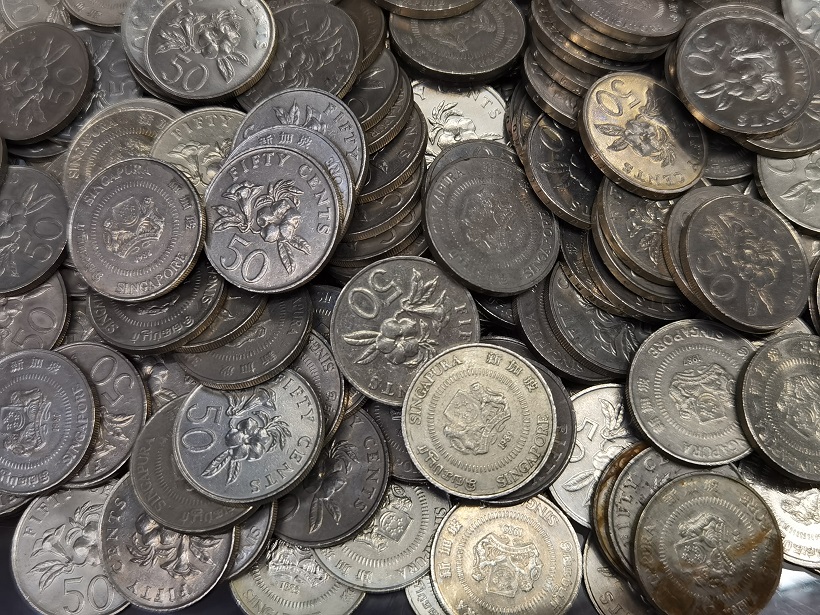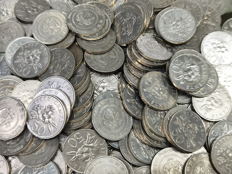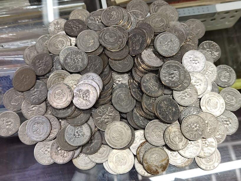 → 新加坡 花版一元硬币 250个 花版五毫 180个