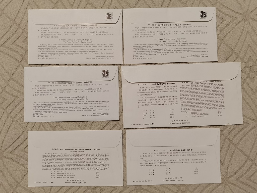 6, T99 牡丹亭 票+型张 总公司和北京分公司首日封 各一套 合售 158元。