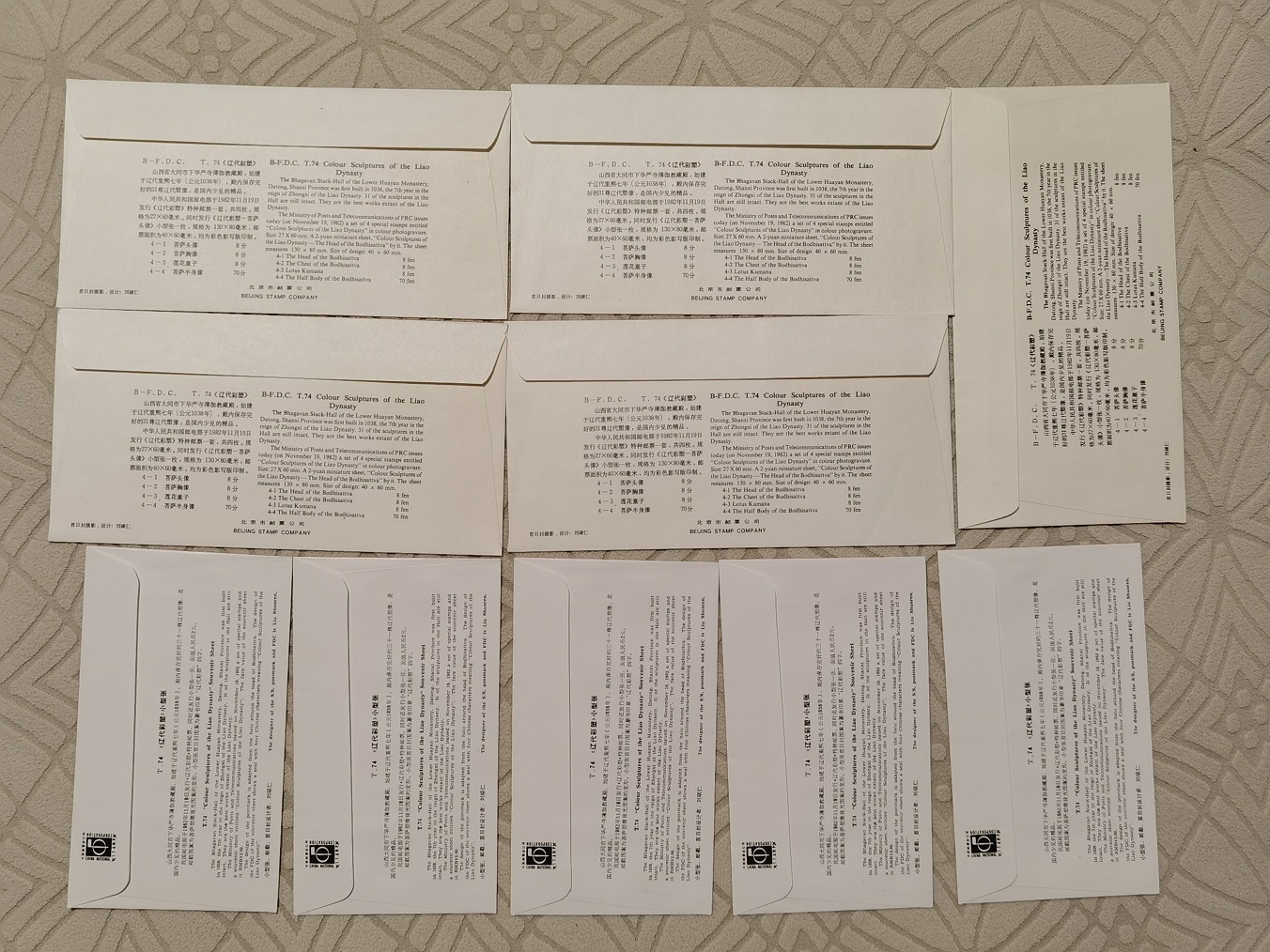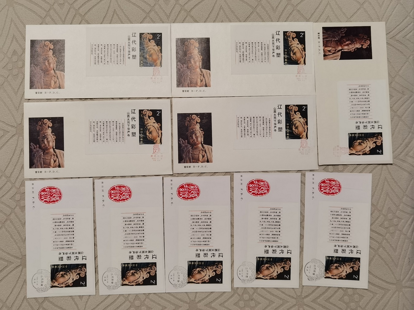 7, T74 辽代彩塑 型张 总公司首日封和分公司首日封 各五个 共5对 170元/对