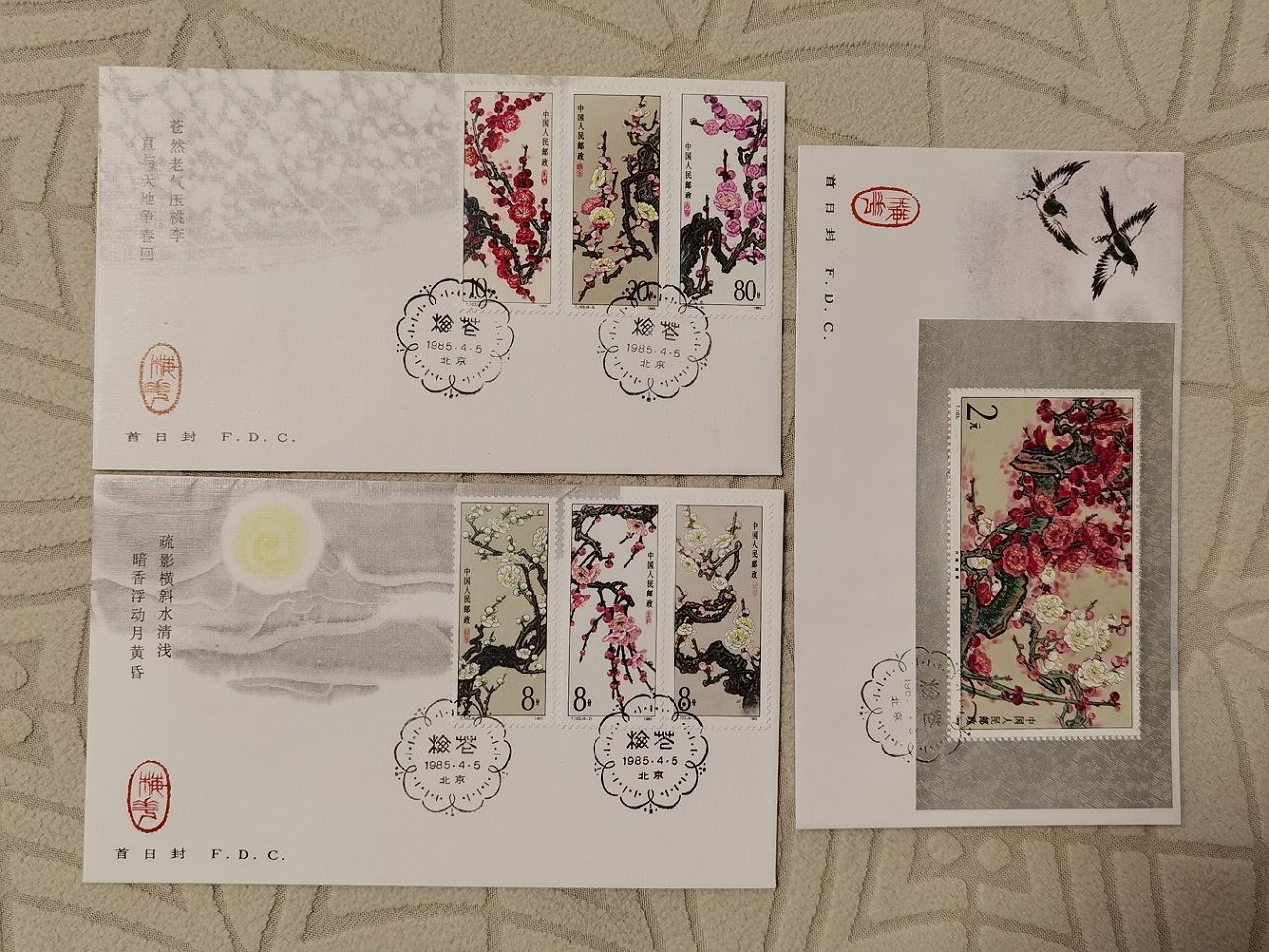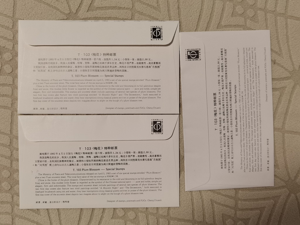 8, T103 梅花 票+型张 总公司首日封 一套 80元