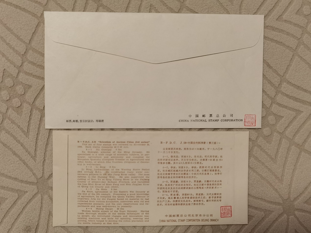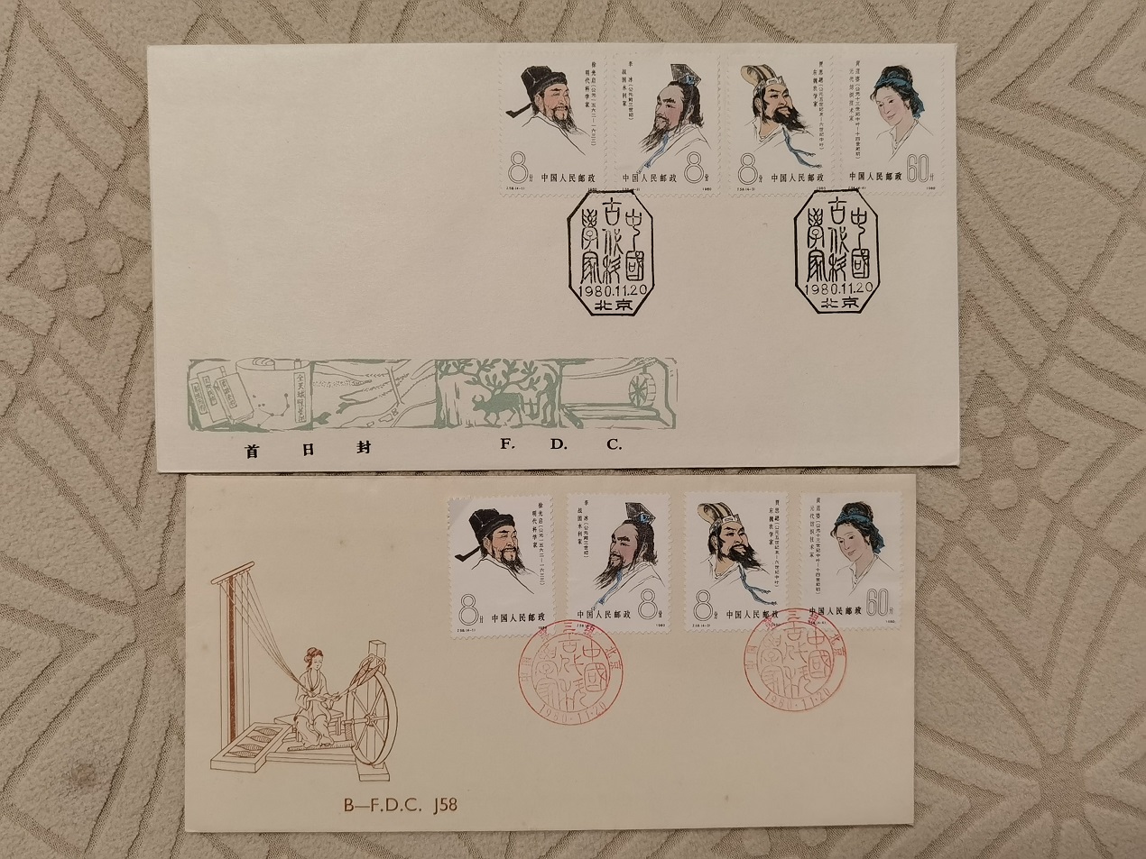 9, J58 古代科学家 票 总公司封 和北京分公司封各一个 两个一起 500元。