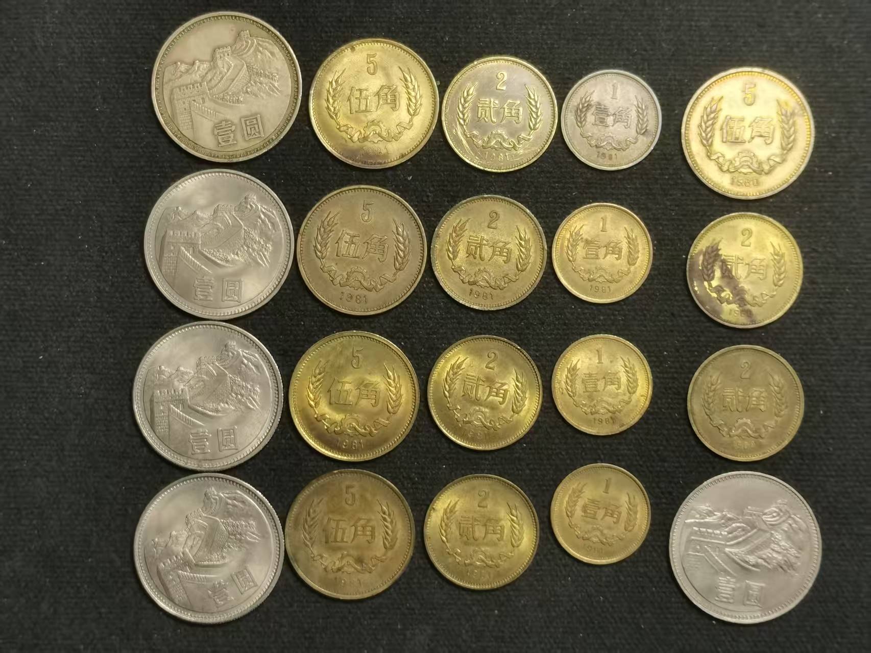 80年2角 2枚, 每枚110元。 81年1元 6枚, 每枚35元。