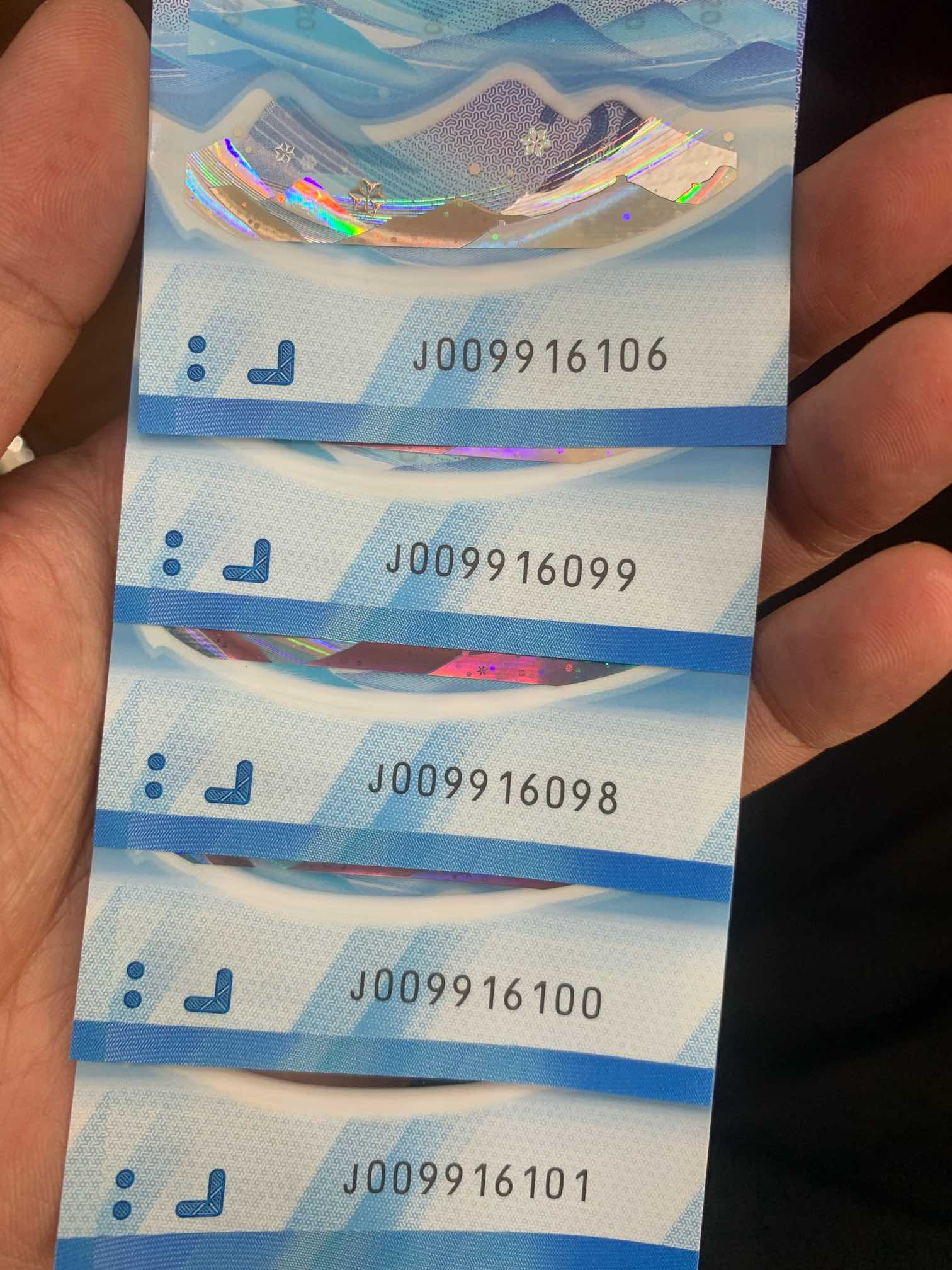 冬奥钞倒置 5 张 55 一张