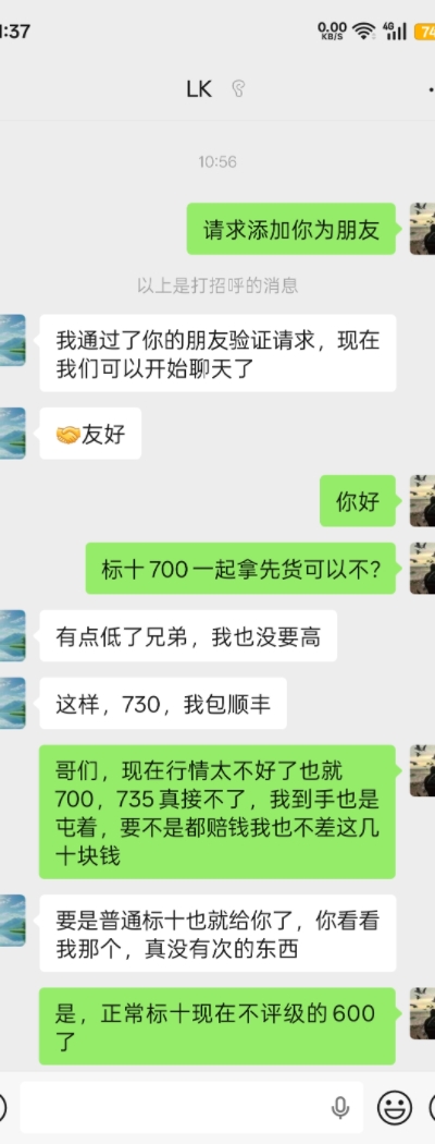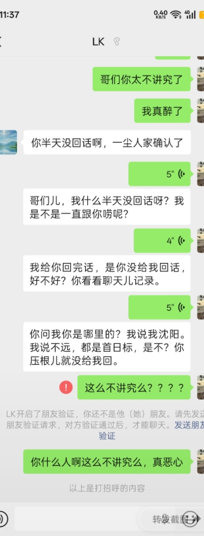 版主您好,事情是这样的,和此贴用户微信沟通已经确定好价格都谈好了,我说最后一组号码打错了 应该是标10不是标20,他说打错了,说给我发图片,完事我正看着呢,我问他是不是都是首日标 没给我回,过了几分钟给我回说别人确认了 完了 就直接给我微信拉黑了 我就没见过这么不讲究的人 完事儿还倒打一耙说我没给他回 人品相当恶劣 在帖子底下还骂我 请版主明断
