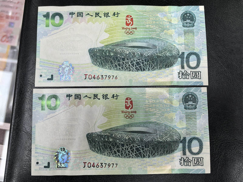 奥运钞两张连号,绝品无斑