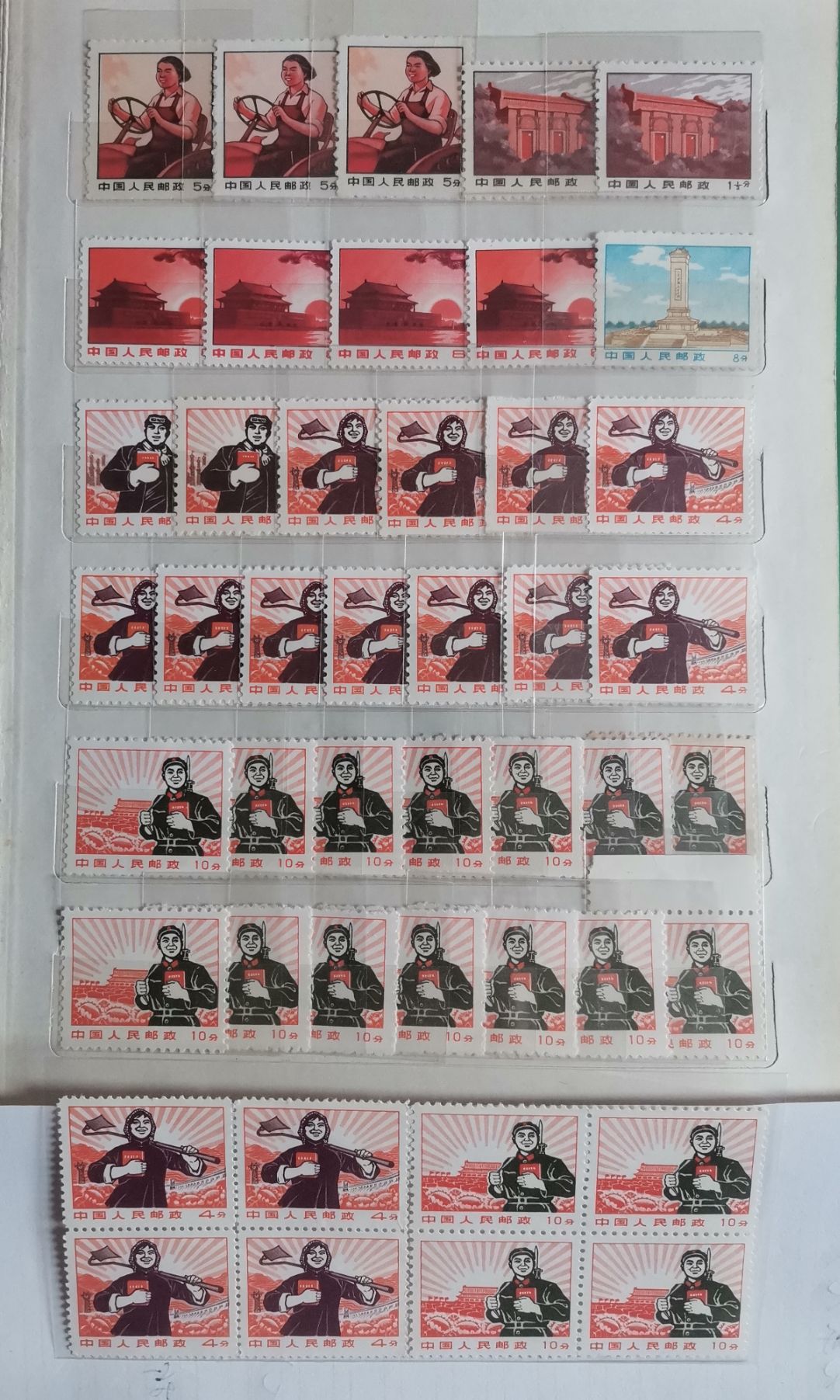 → 出点普无号单枚,普28长城双厂名直角方,普29长城四组色标单套
