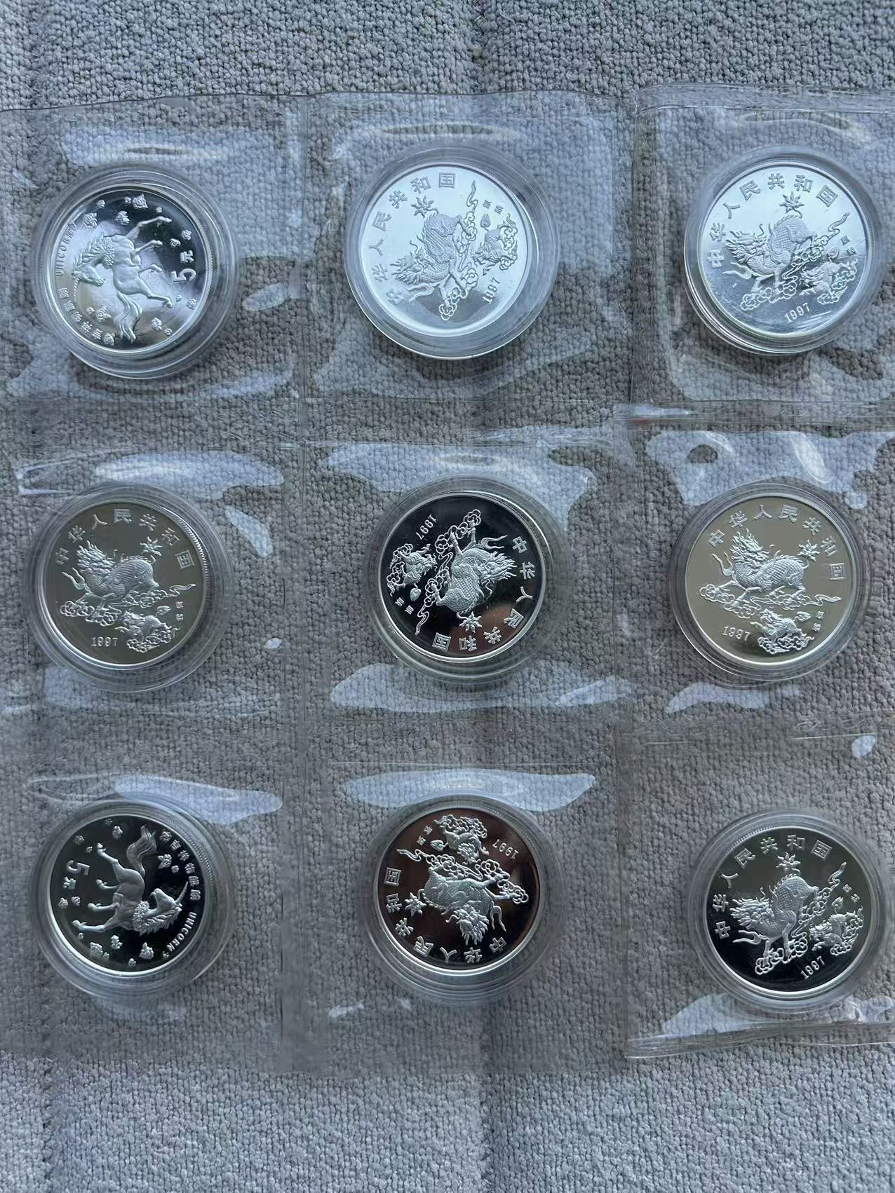 97年小麒麟银币9枚,包真999纯银(1枚20克),