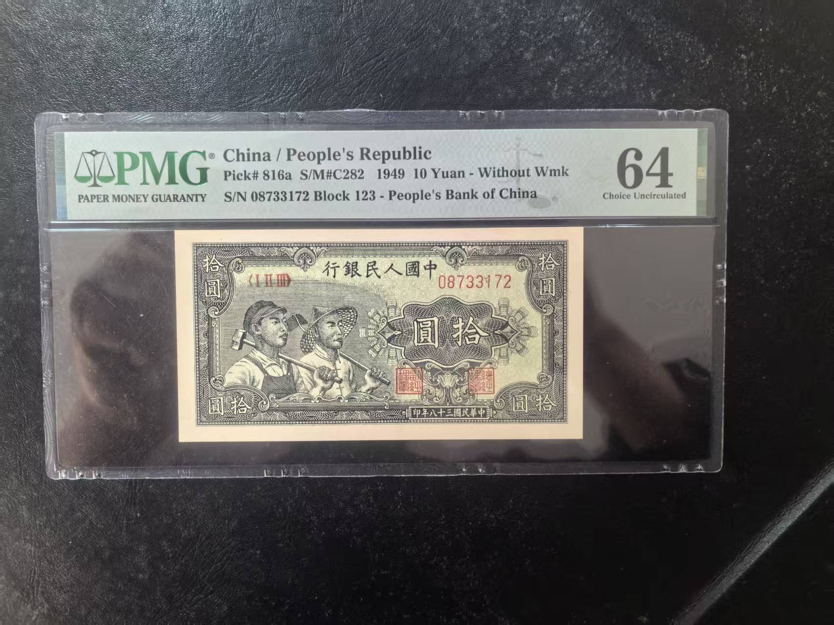 一版工农全新直版原票,美评PMG64主流分无4,票面干净平整,边角自然,售价2850包顺丰