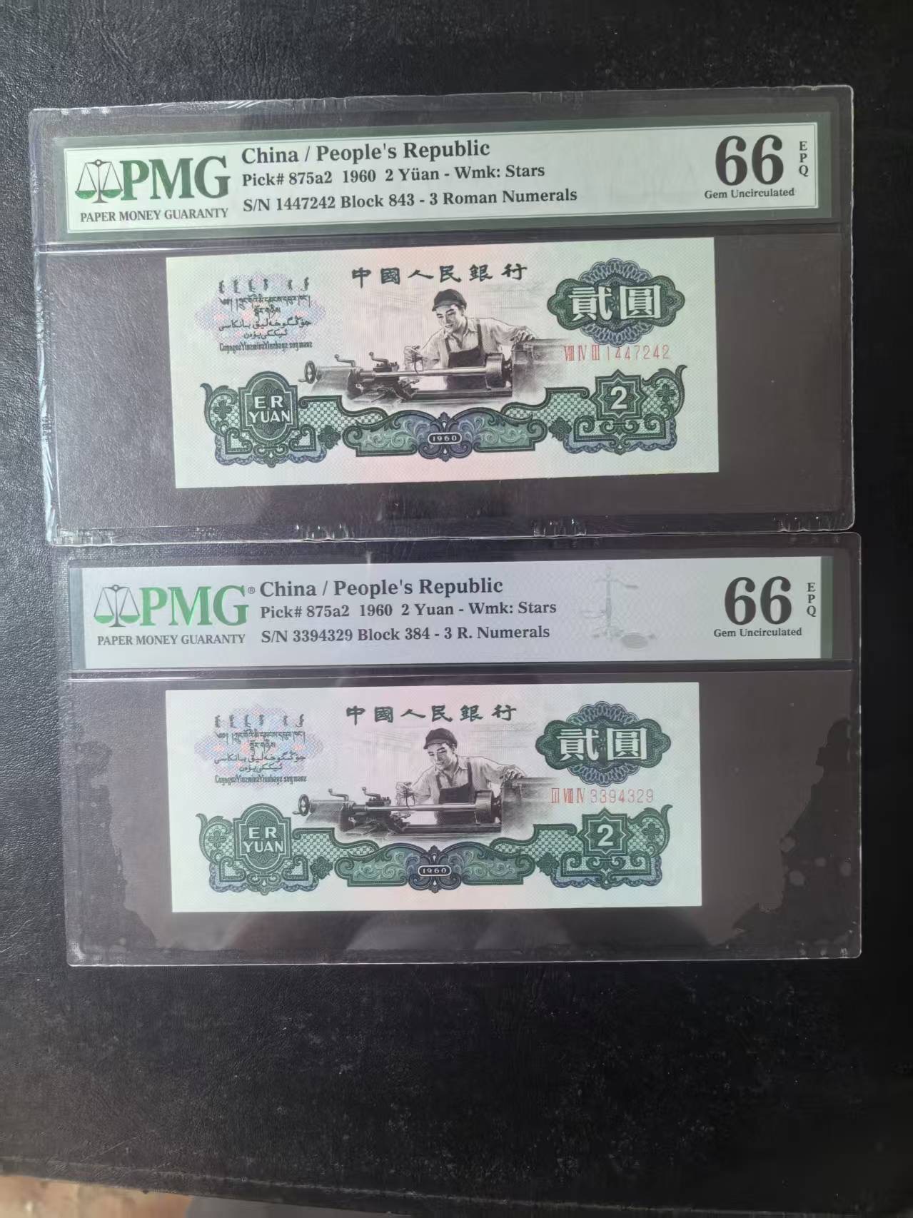 三版五星车工美评PMG66E,全新直版原票,颜色鲜艳,水印清晰,两张售价3100包顺丰