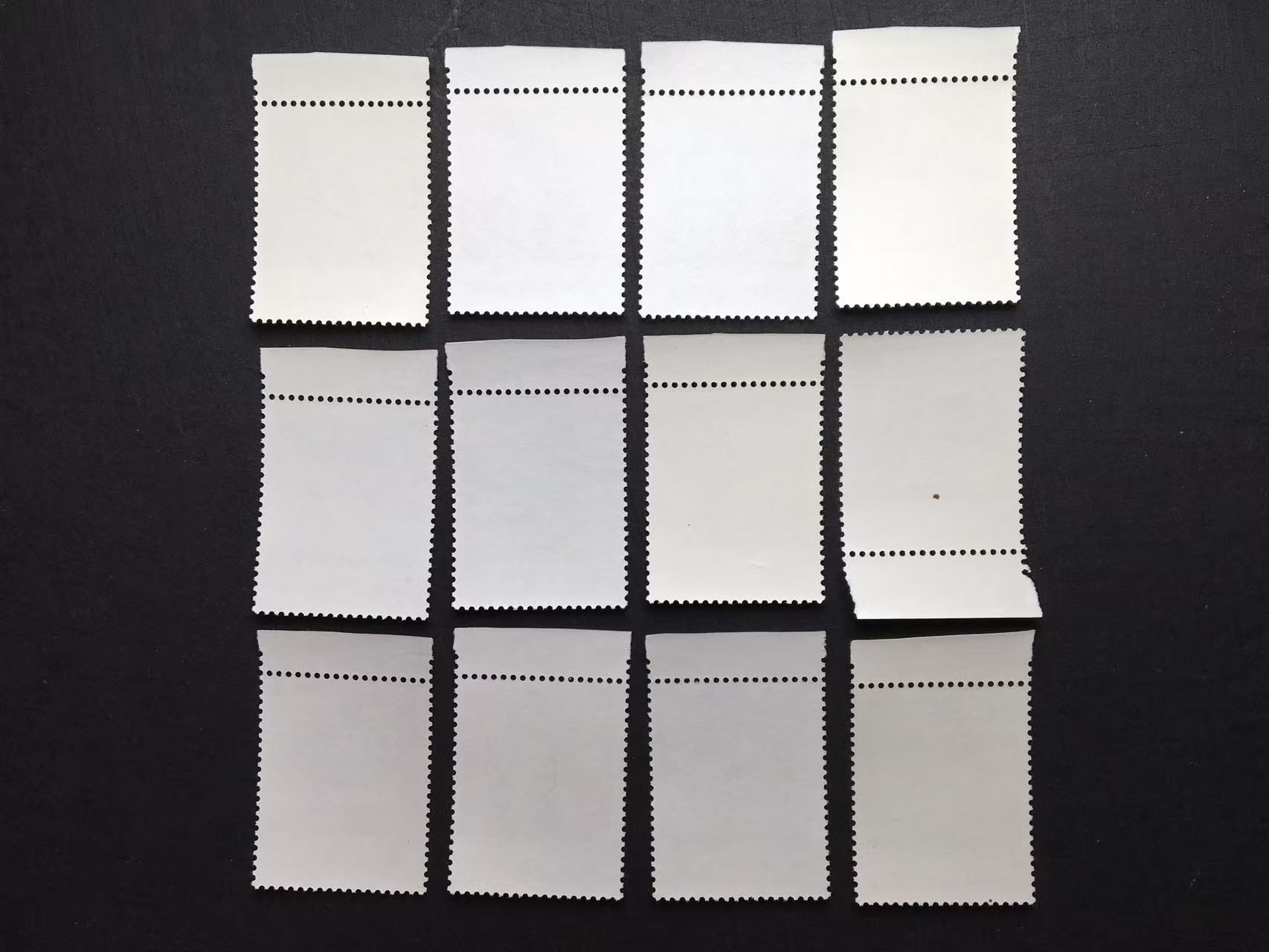 原胶好品(肉眼全品)、带边纸,12枚里有11枚上顺边加“