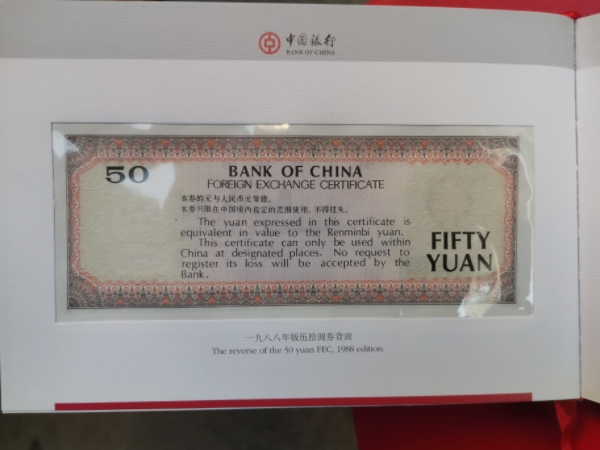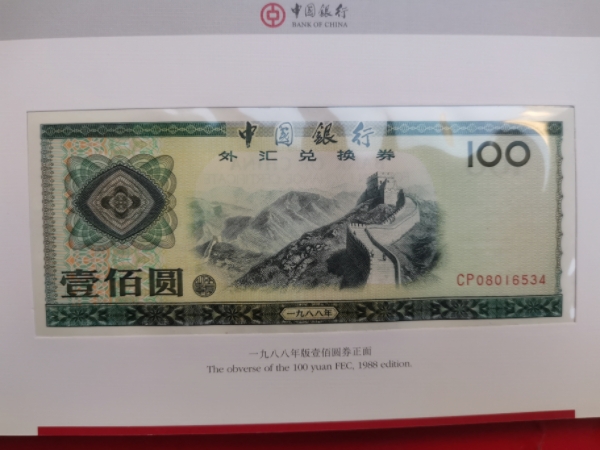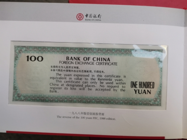 中国银行发行的外汇劵一套。