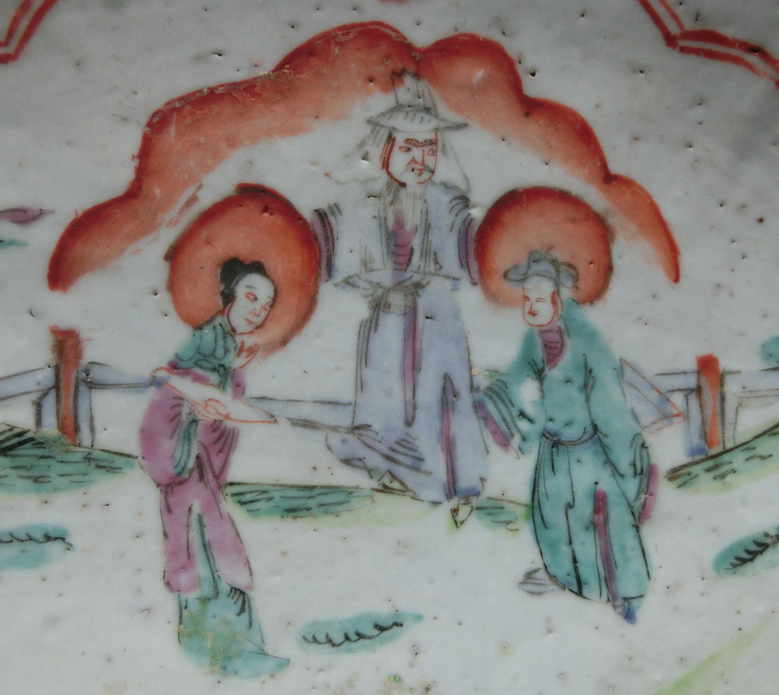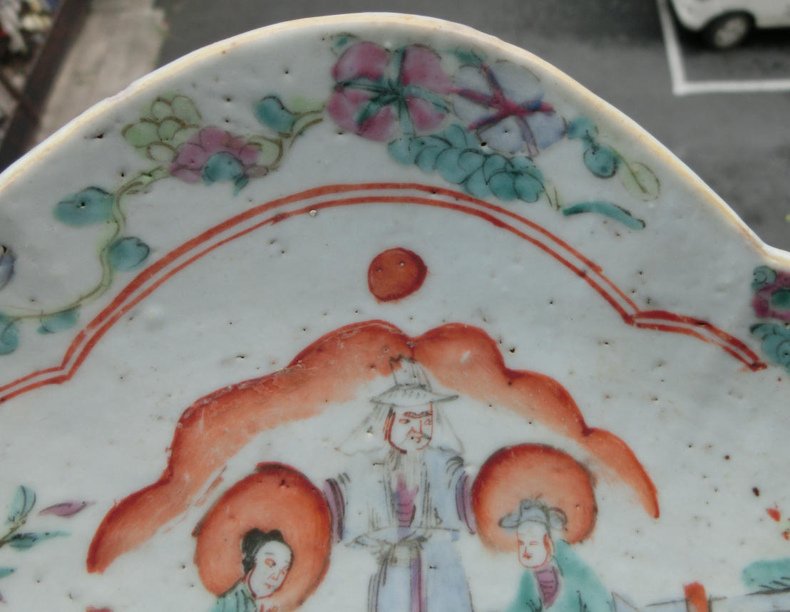 → 传世美品、造型雅致、清中期神话人物花卉粉彩瓷鸭舌盘