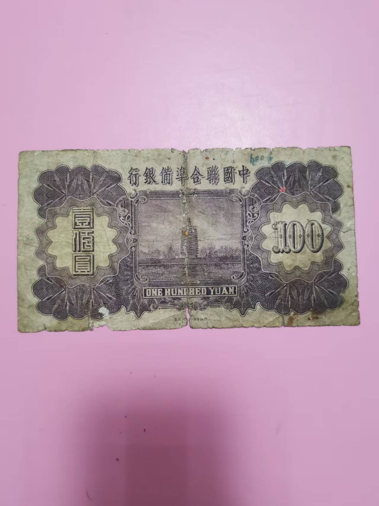卖 联准银行壹百圆,紫龙一张