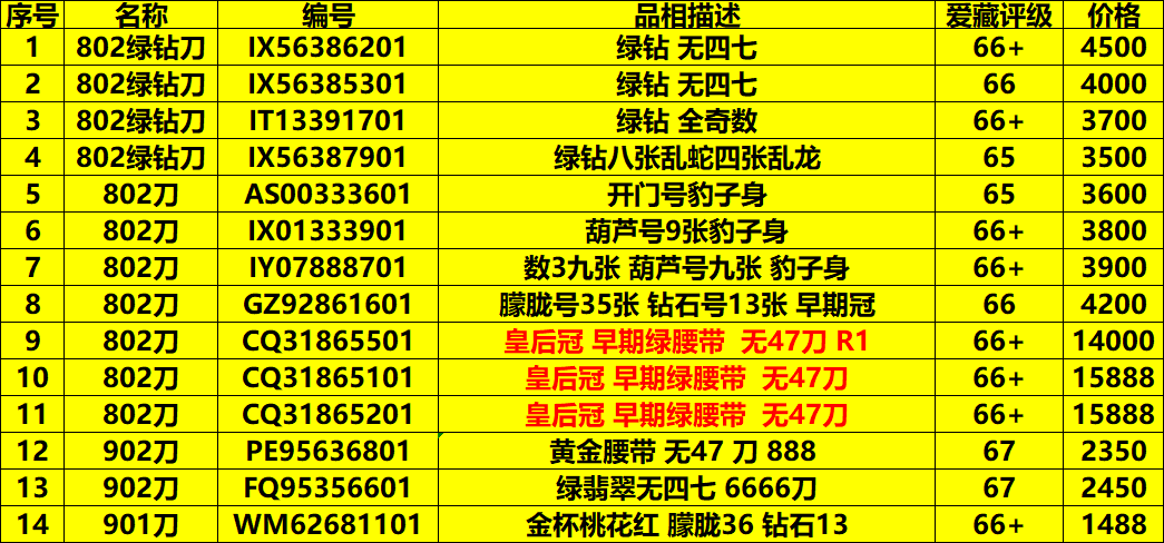 → 802绿钻 902 901 豹子身刀货