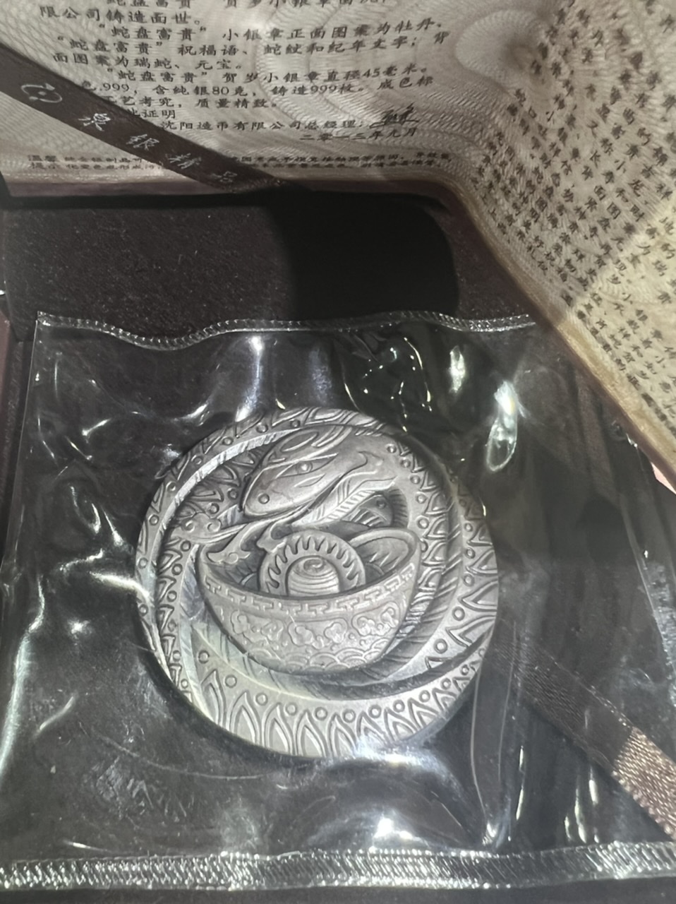 沈阳造币厂普陀山及蛇盘富贵银章