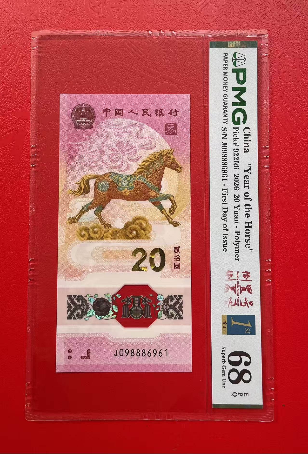 售PMG68E马钞首日标倒置号