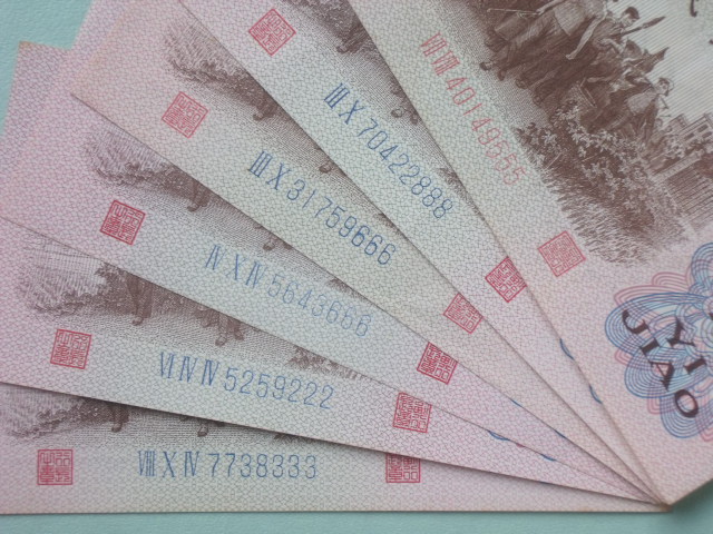 6张1角豹子号,888,555软折,2张666软折有些轻微淡黄,222,333全品无折400元包顺丰。