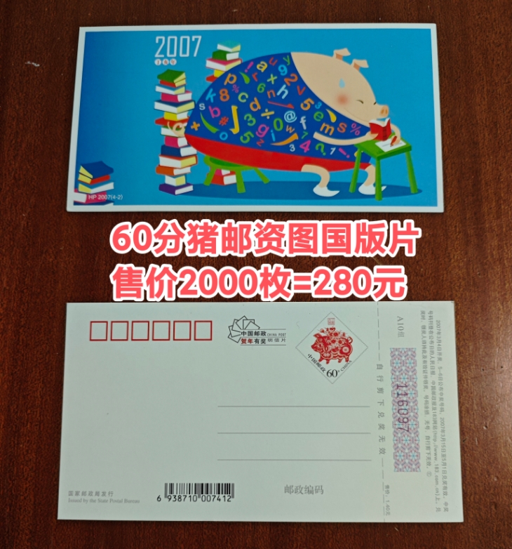→ 卖60分狗,60分猪,邮资国版明信片各2000枚