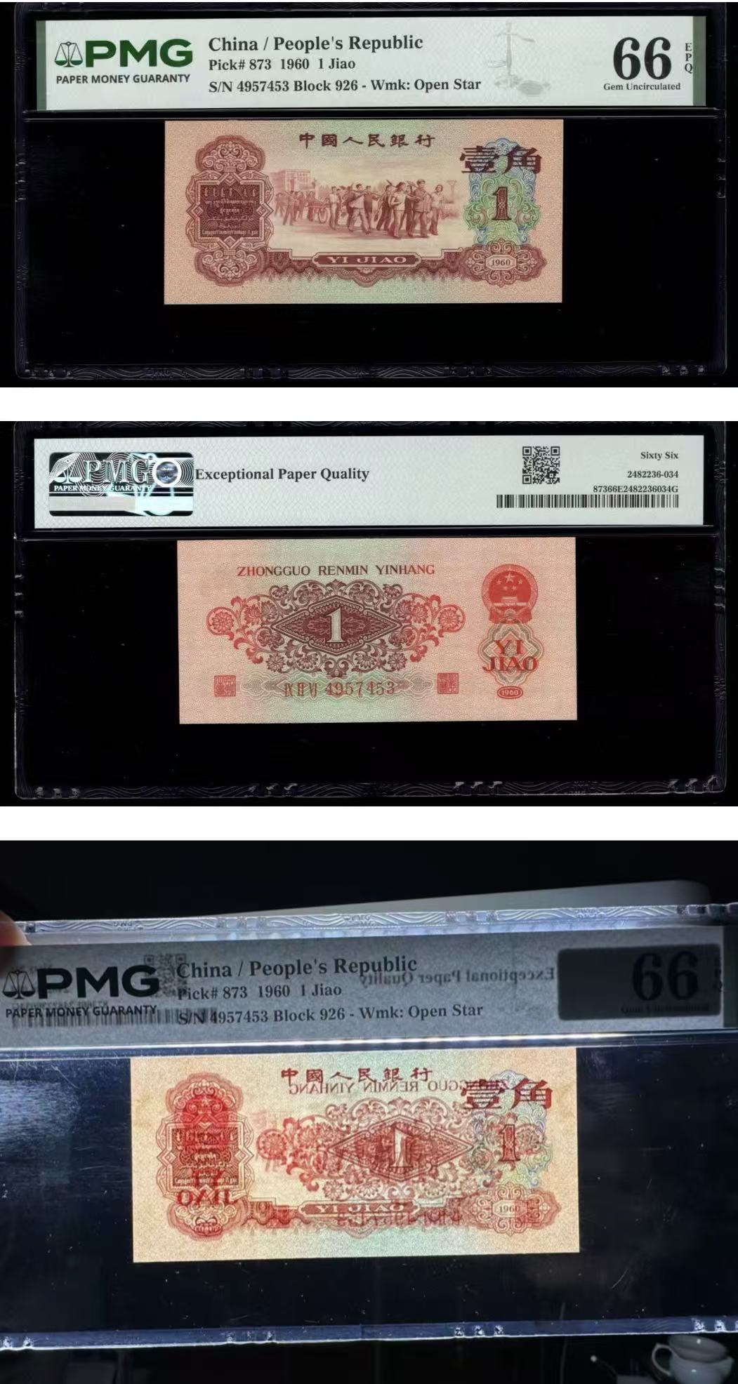 三版明星品种枣红1角美评PMG66E,全新直版,颜色鲜艳,凹凸有致,售价5100包顺丰