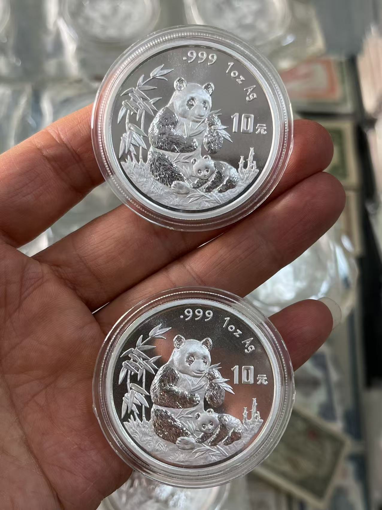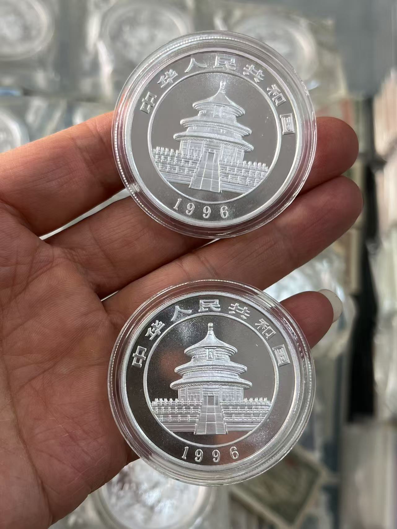 → 1996年熊猫19枚,都是原封,我剪开2个验货看过品相了,都是无氧化极美品