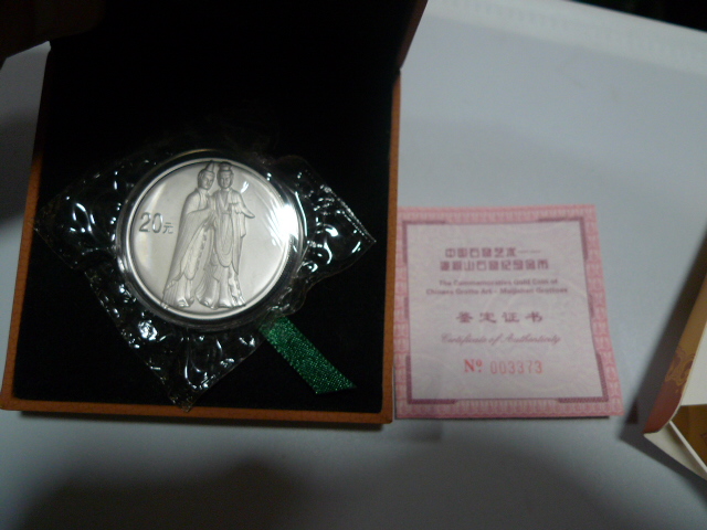 3850元出售1/10千禧年金币一枚;2980元出售原封膜2盎司麦积山银币一枚。品如图,需者