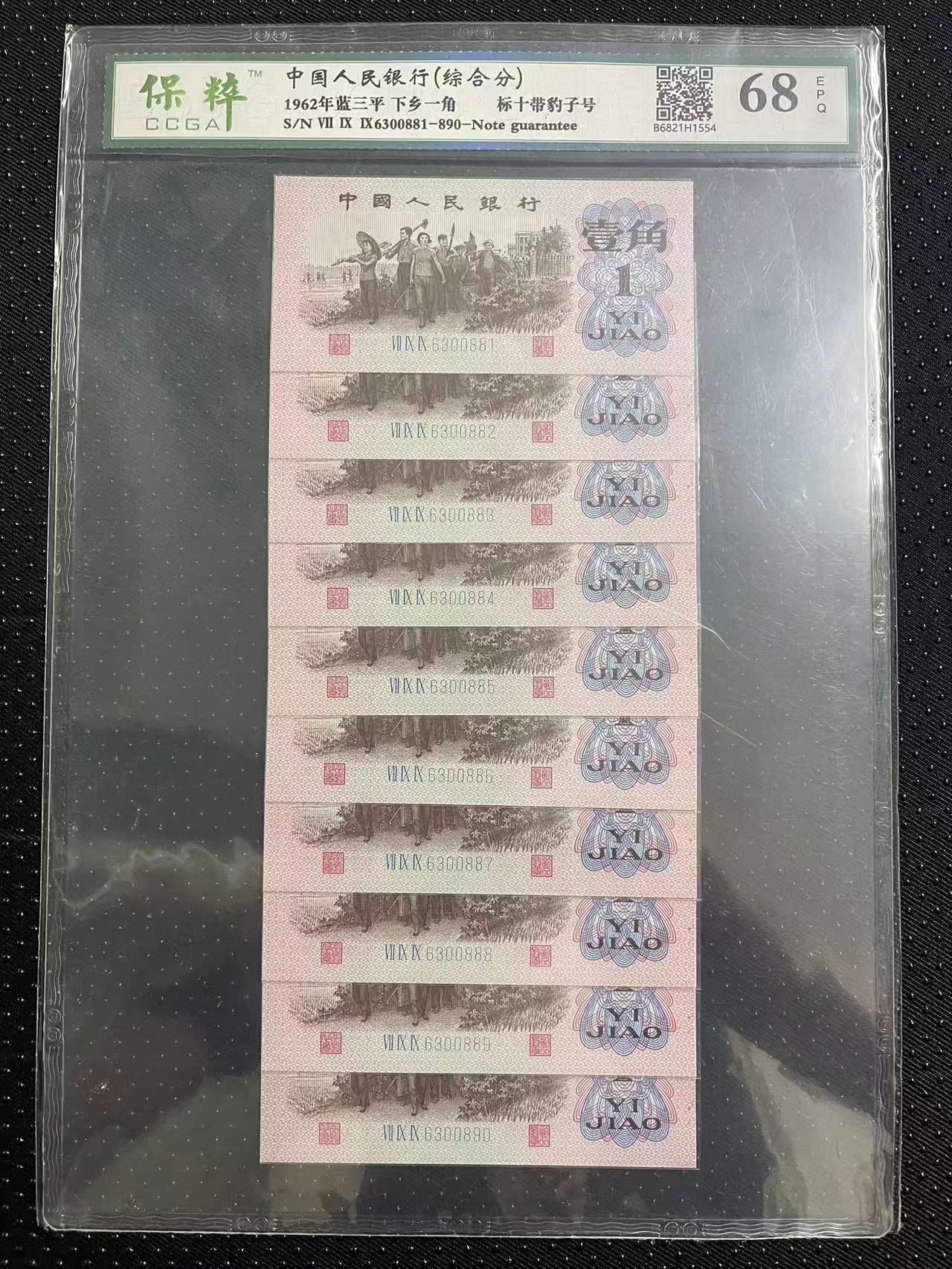 三版蓝3罗下乡一角标十连,无47带豹子号888,全新 灯下无斑,品如图,售:218元包邮。