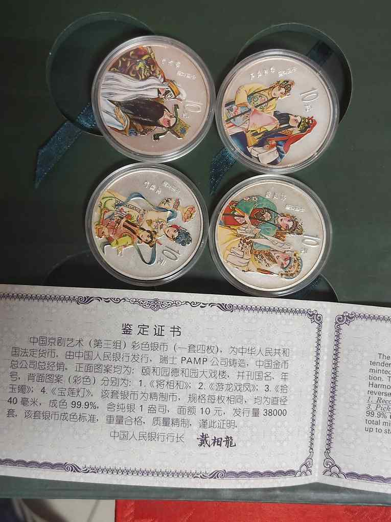 → 售01年京剧艺术三组彩色银4枚盎司一套