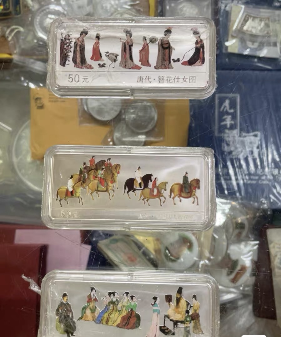 售5盎司彩银1-3组,仕女图,游春图,夜宴图,12000元需要电联确认