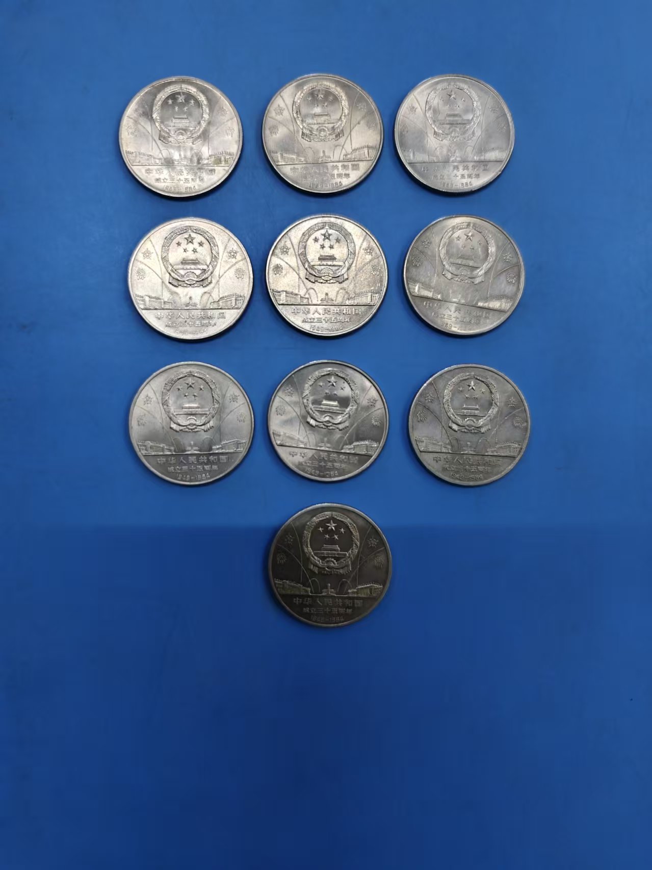 低出;原光建国35周年纪念币2套外加大典一枚华表3枚,一起出1190元,北方货品,实物拍图,按图发货,电联确认,微信同号!