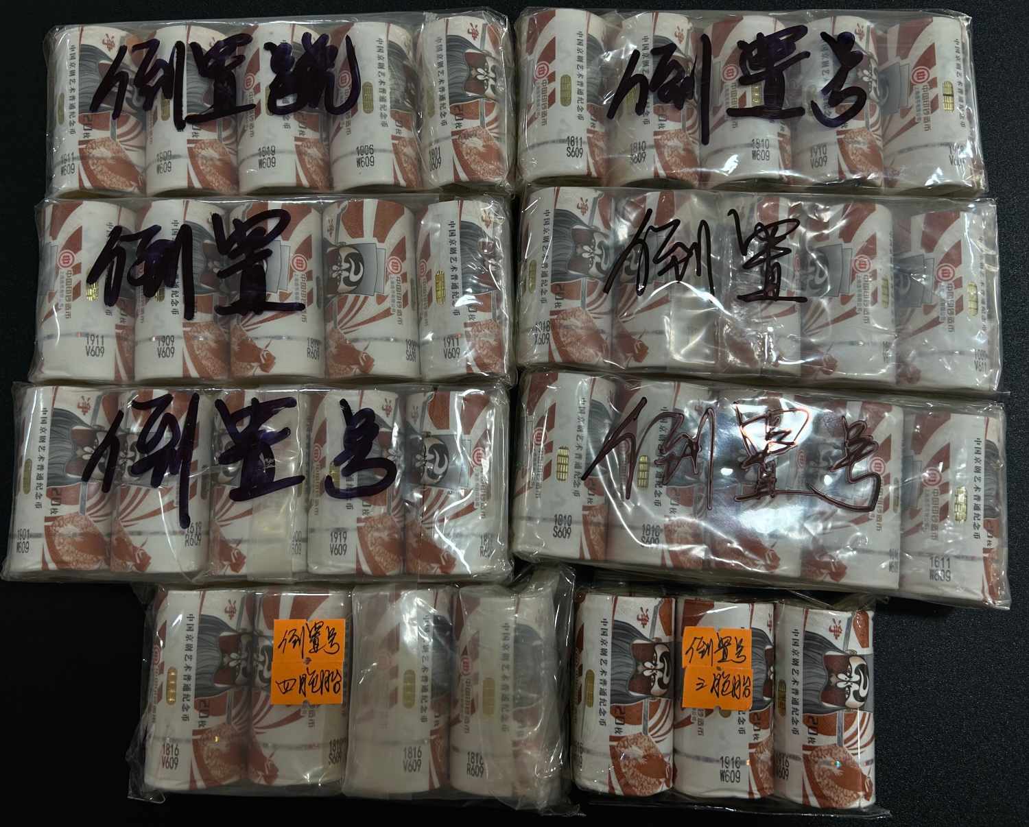 其中有8卷是普通号,倒置号有37卷,有一个四胞胎一个三胞胎,其他没有看号码是否相同;