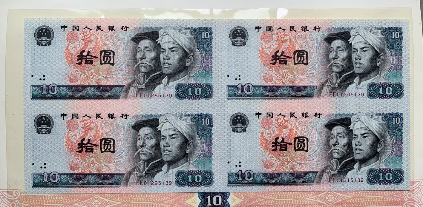 角币四连体对号,5角背面边上有小黄点,900元。