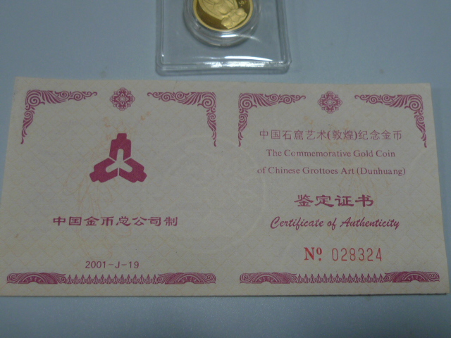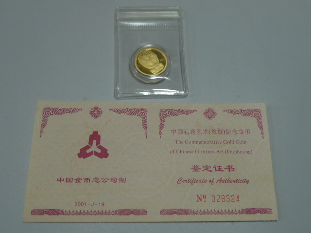 → 3850元出售好品2001年敦煌1/10金币一枚。